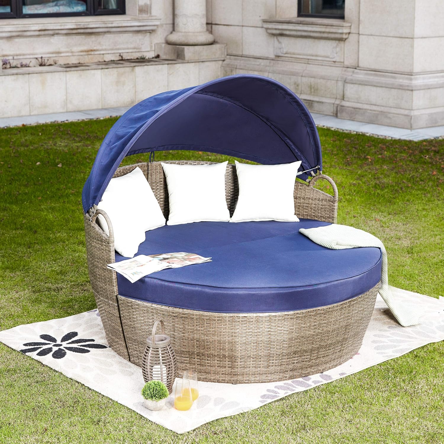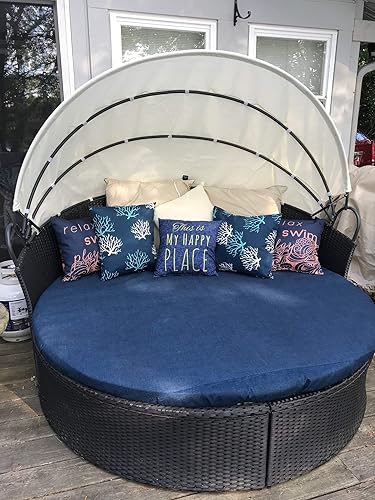 It is crafted with driftwood gray all weather wicker and sand colored cushions. Shop for outdoor daybed cushion online at target. Plus, the headboard can be used as a planter to add more greenery to the piece of furniture. It's tufted look and stitches are surely making it cozier than it could be without those! Costway daybed patio sofa furniture round retractable canopy wicker outdoorby costway(1). Need a great piece of furniture for relaxing outdoors? Do you assume round outdoor daybed cushion looks nice? The spacious space eliminates the worry that tall people will be uncomfortable due to crowding. June 27, 2013 by angela elias. Whether you want to spread out in an open backyard space or tuck away in an empty corner on your deck, the outdoors can provide the perfect setting to gather your thoughts and chill in the breeze. Create your own custom round daybed cushions for indoor and outdoor use. In addition to this, the material of its cushion is also significant. Daybed rattan indoor light brown sunbed cushions furniture kallithea.